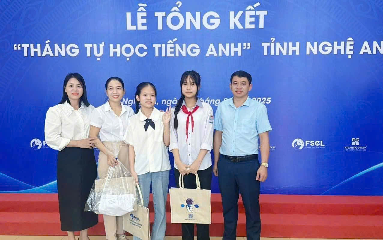 🌹Chúc mừng em Nguyễn Ngọc Thiên Minh và em Phan Bảo Hân lớp 7A trường THCS Nhân Thành (học sinh của cô Lê Thị Quỳnh Nga) đã được tuyên dương và nhận thưởng trong chương trình “Lễ Tổng kết Tháng Tự Học Tiếng Anh tỉnh Nghệ An” do FSEL tổ chức, Đây là niềm vinh dự không chỉ của cá nhân các em mà còn của tập thể thầy và trò toàn trường. 🌹Xin chúc mừng thành tích đáng tự hào này và mong rằng các em sẽ tiếp tục phát huy tinh thần học tập, truyền cảm hứng đến toàn thể học sinh trong trường❤❤❤